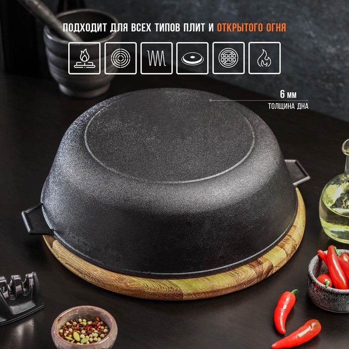 Сковорода литая чугунная Magma, d=28 см, h=8 см, с двумя ушками, индукция