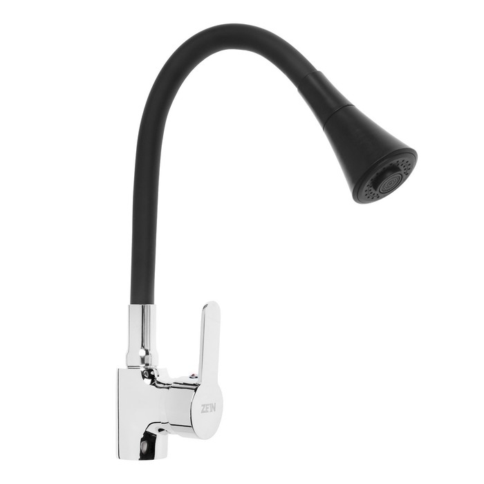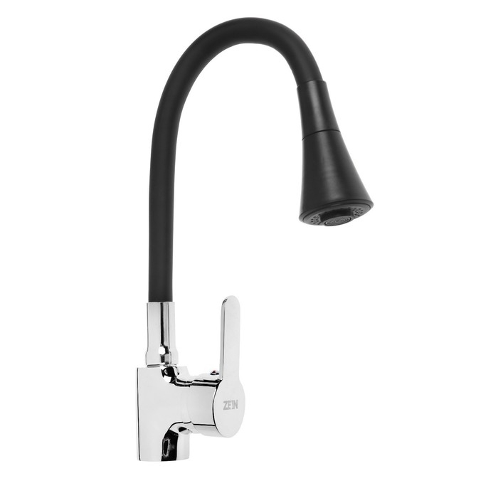 Смеситель для кухни ZEIN Z2076F, силиконовый излив, картридж 35 мм, латунь, черный/хром