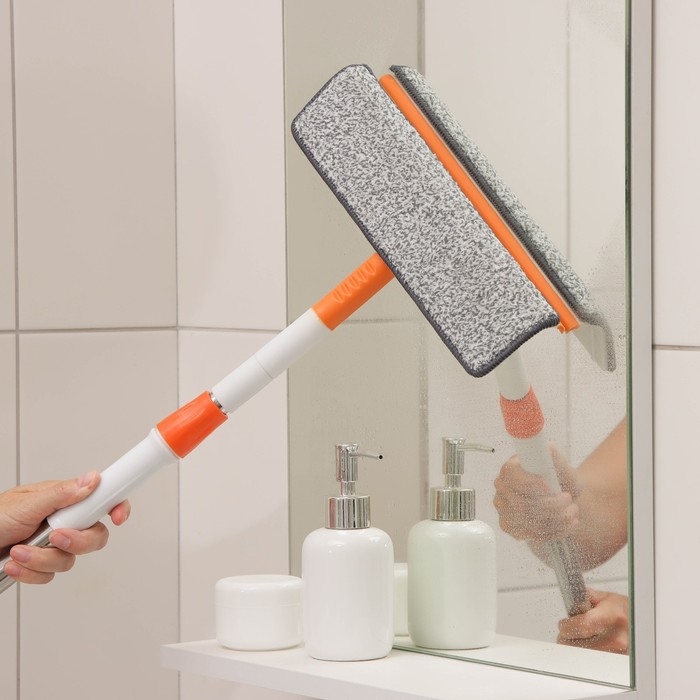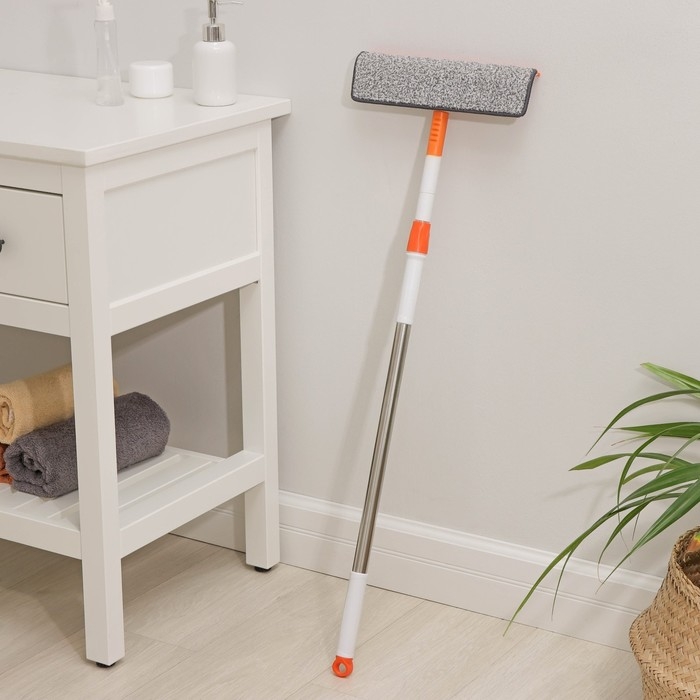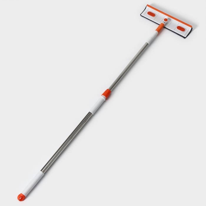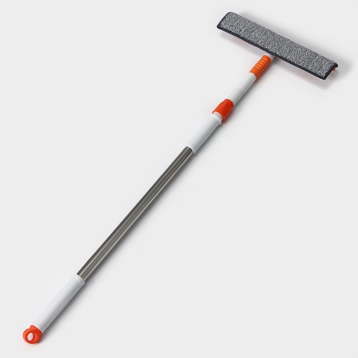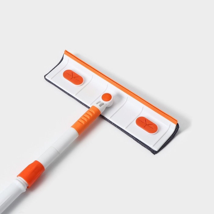 Окномойка с насадкой из микрофибры Raccoon, фиксатор, стальная телескопическая ручка, 28×7×85(120) см, цвет белый, оранжевый