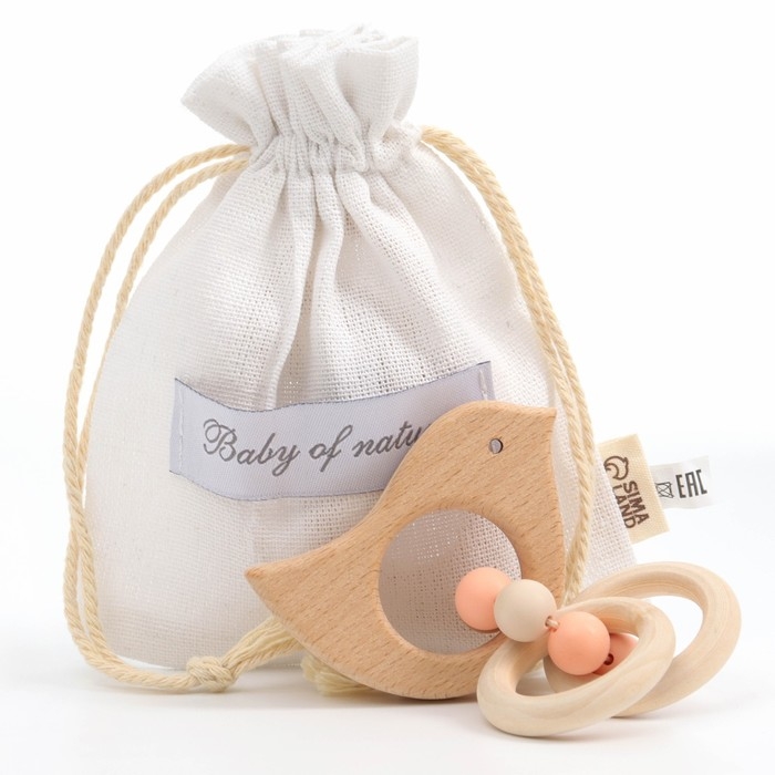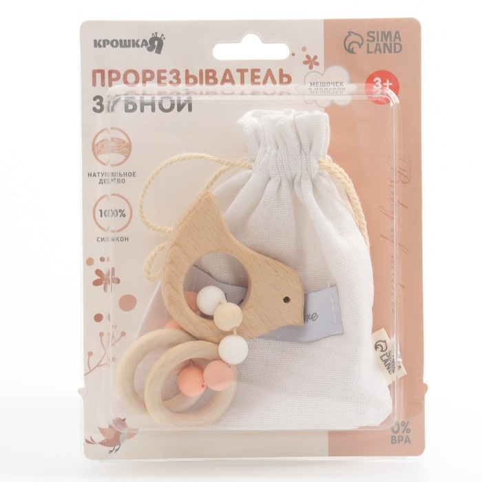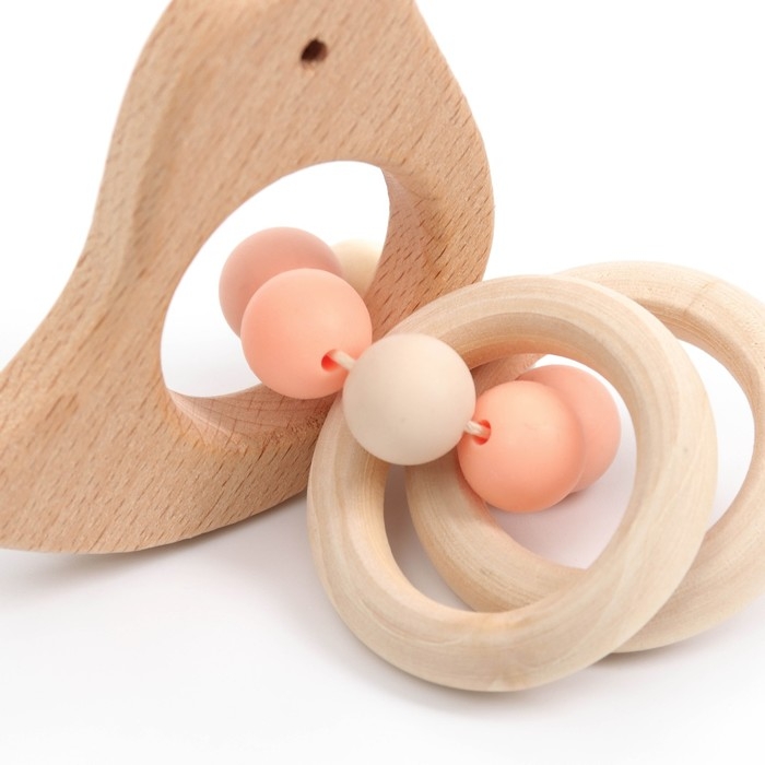 Прорезыватель для зубов «Bird» с эластичными и деревянными элементами