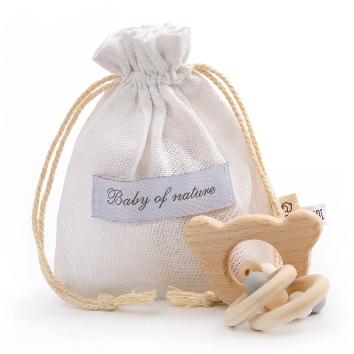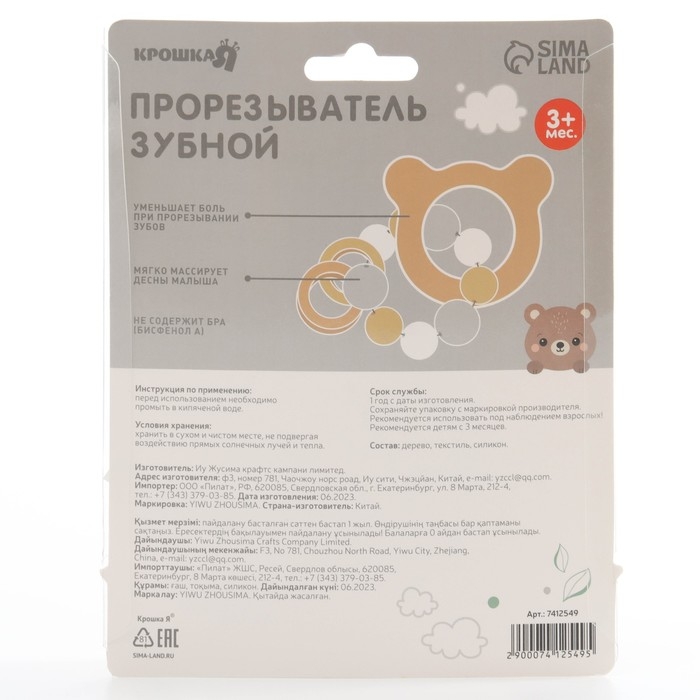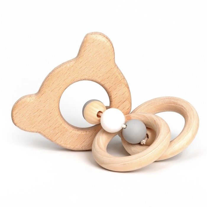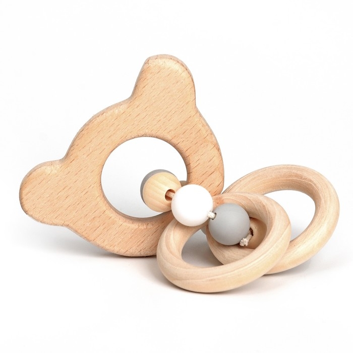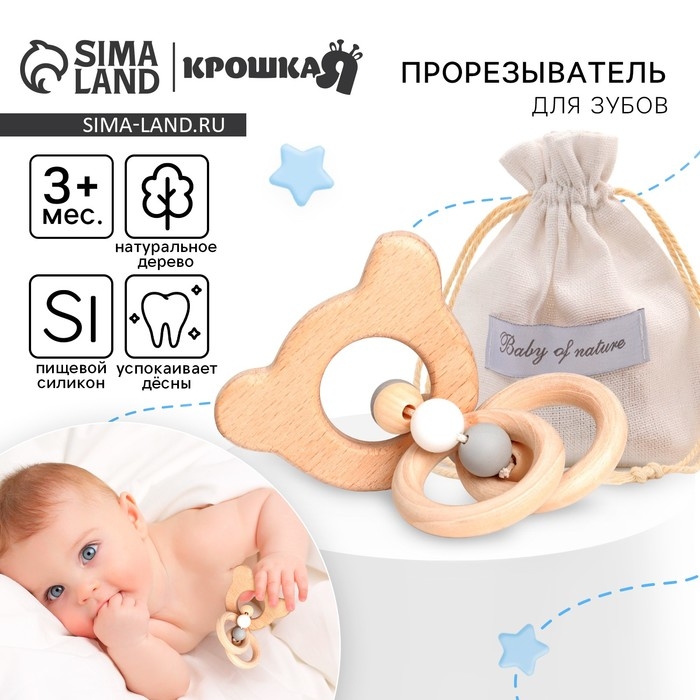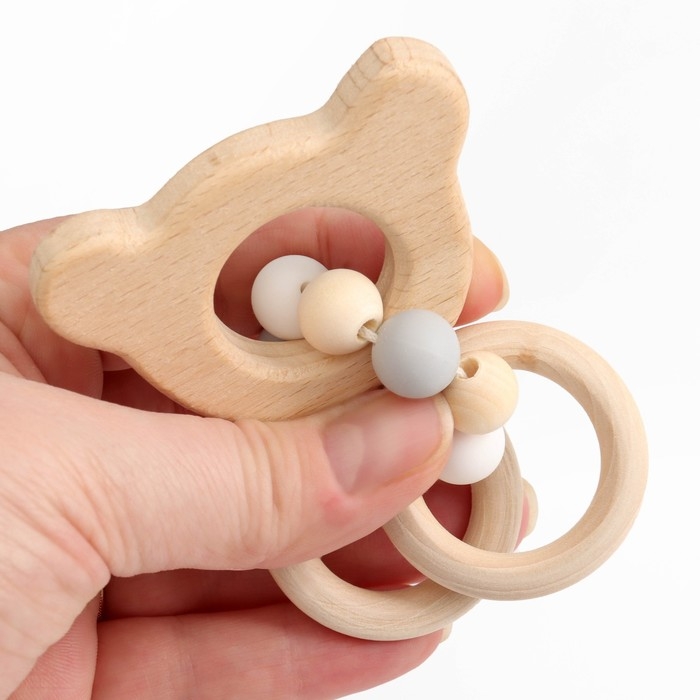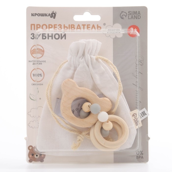 Прорезыватель деревянный для зубов «Мишка», с силиконовыми элементами, Крошка Я