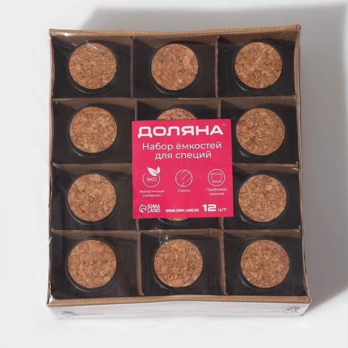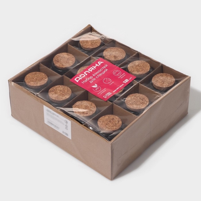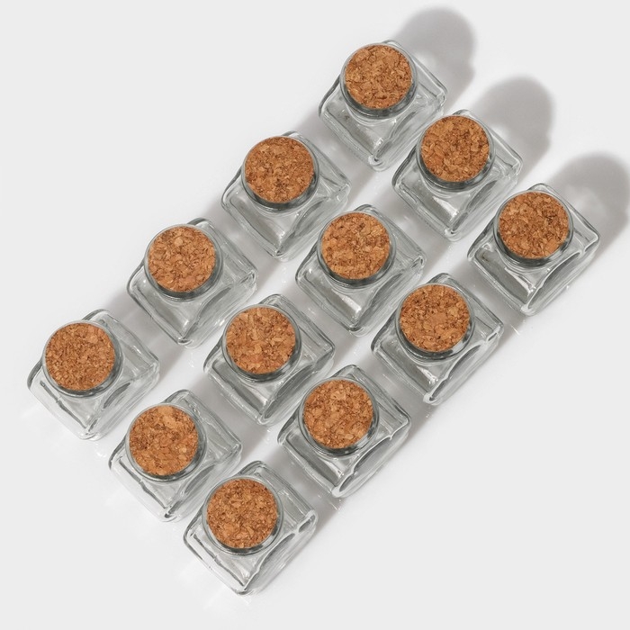Набор стеклянных баночек для сыпучих продуктов с пробковой крышкой Доляна «Парфе. Облачко», 100 мл, 6,5×5×7,5 см, 12 шт