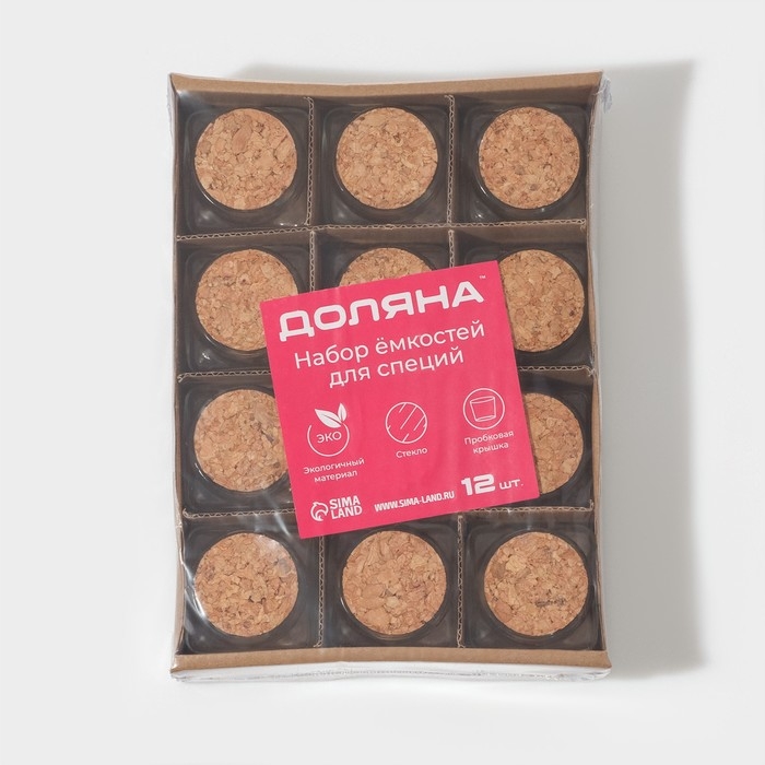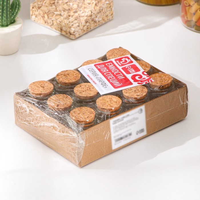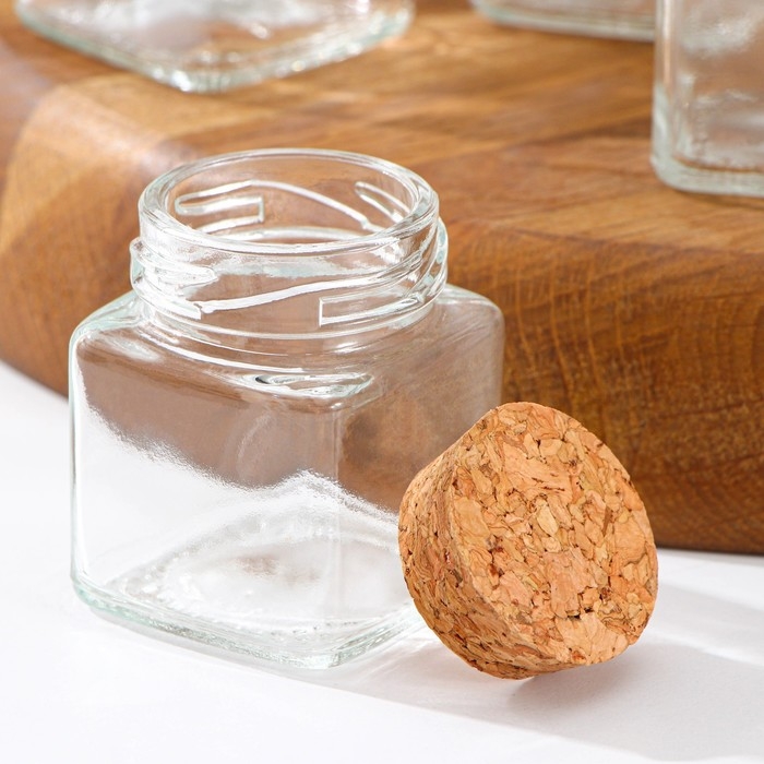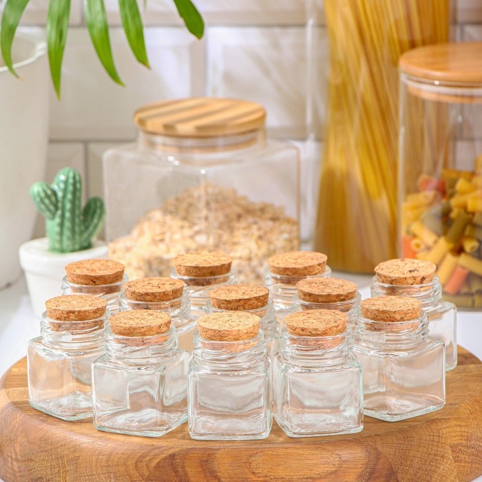 Набор стеклянных баночек для сыпучих продуктов с пробковой крышкой Доляна «Парфе. Квадрат», 70 мл, 4,5×5,4 см, 12 шт