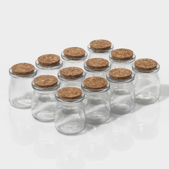 Набор стеклянных баночек для сыпучих продуктов с пробковой крышкой Доляна «Парфе», 100 мл, 5,7×7 см, 12 шт