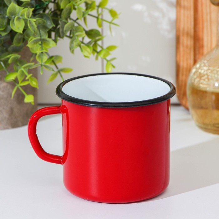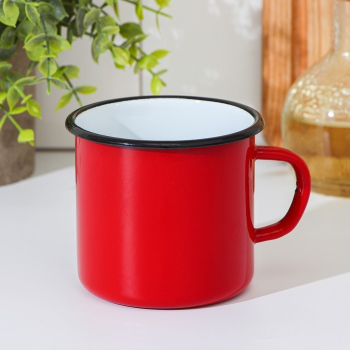 Кружка эмалированная, 400 мл, цвет красный