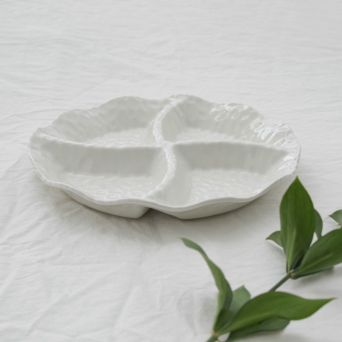 Менажница керамическая 4 ячейки «Воздушность», 24×3,5 см, цвет белый