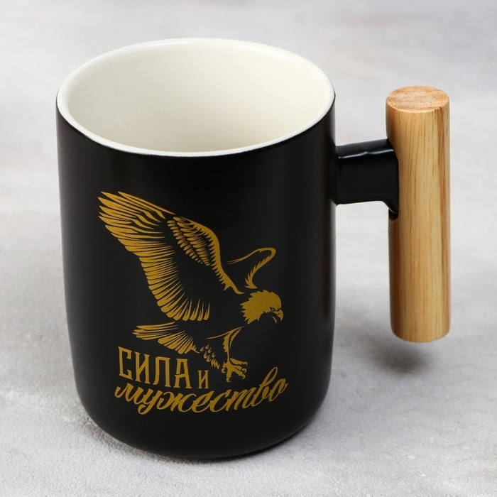 Кружка керамическая «Сила и мужество», 400 мл, цвет чёрный