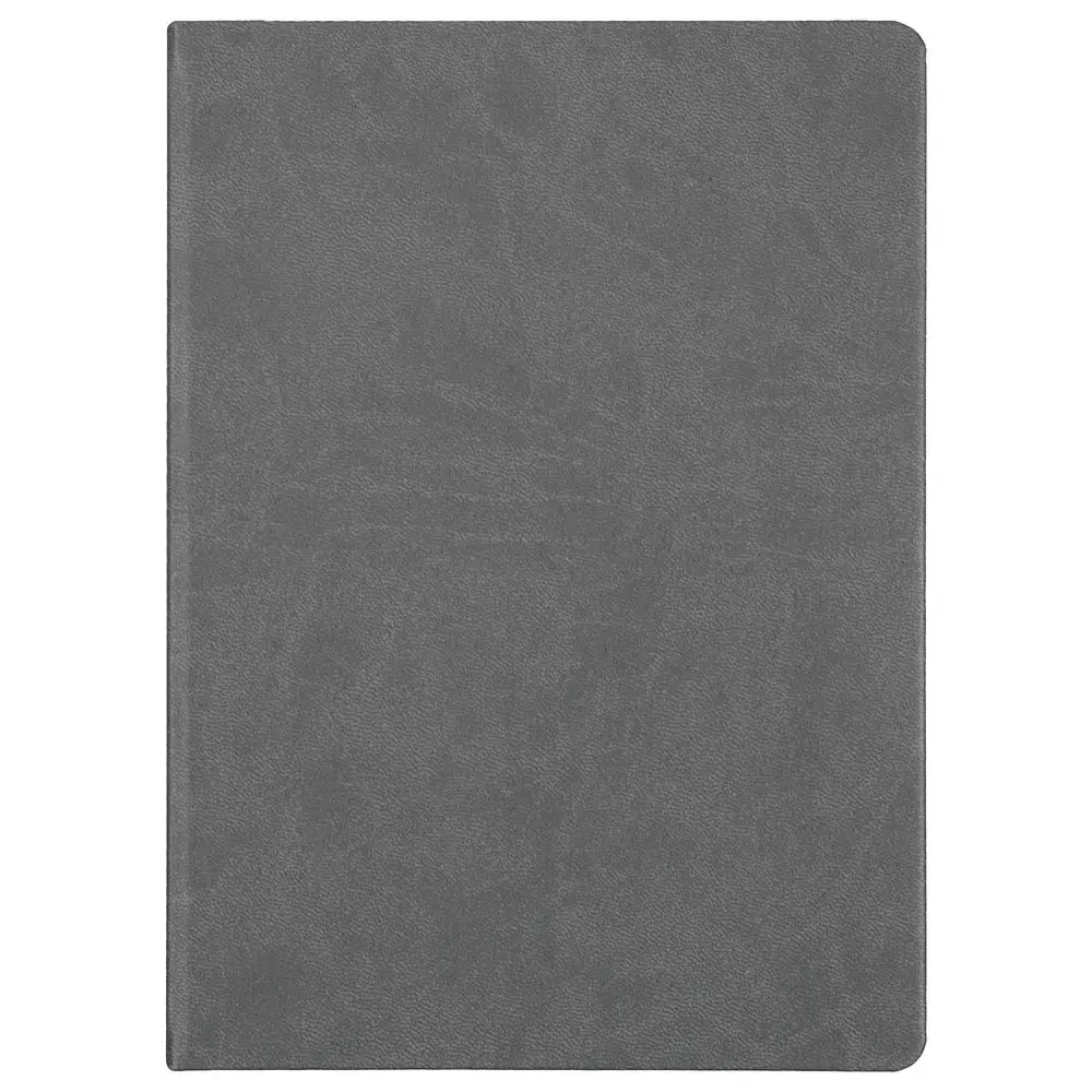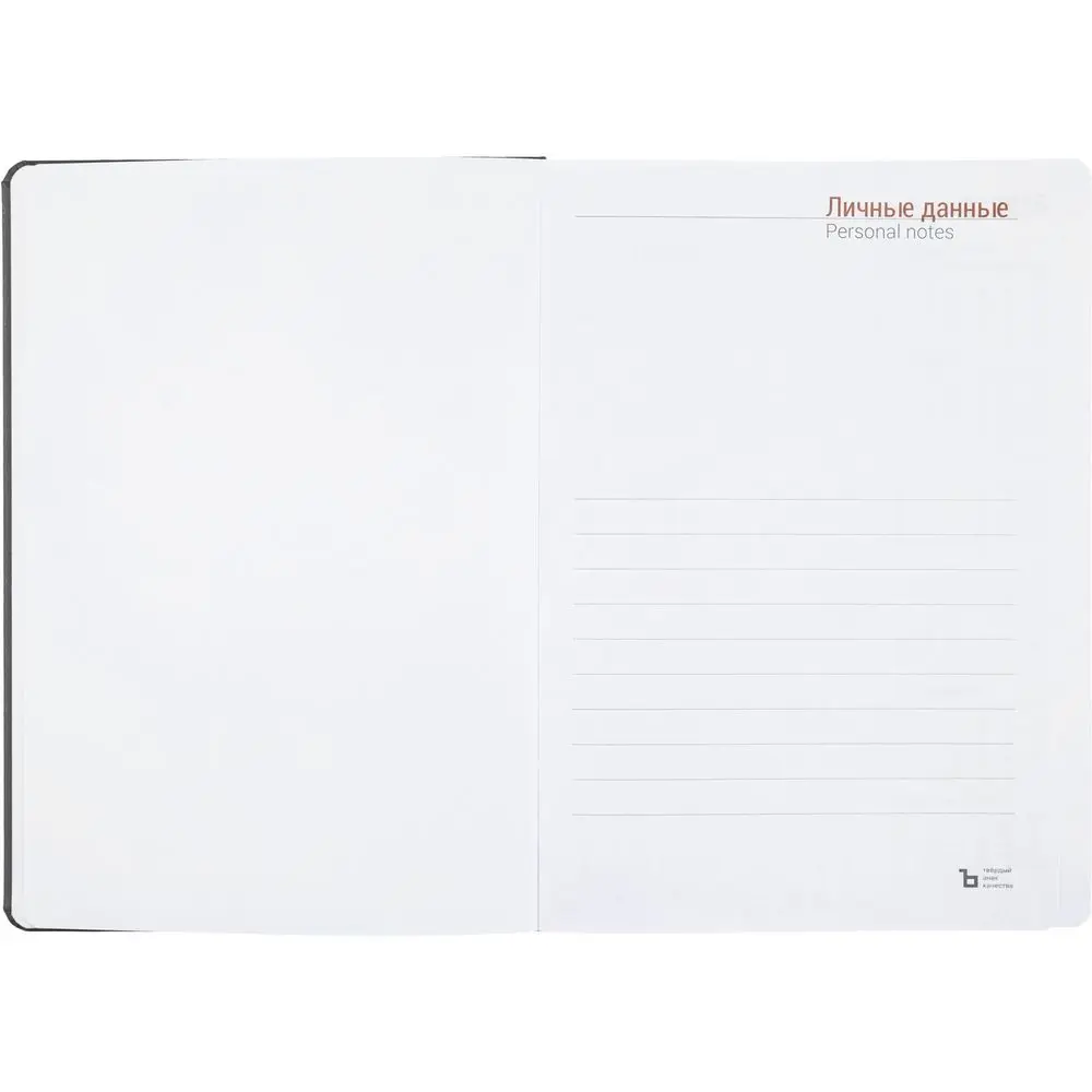 Ежедневник с твердой обложкой, выполнен из материала Latte, темно-серый ЕЕ, дополнен ляссе в цвет обложки.