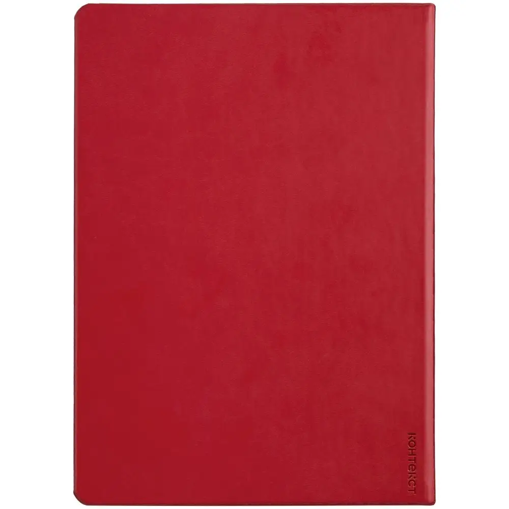 Ежедневник с твердой обложкой, выполнен из материала Latte, красный РР, дополнен ляссе в цвет обложки.