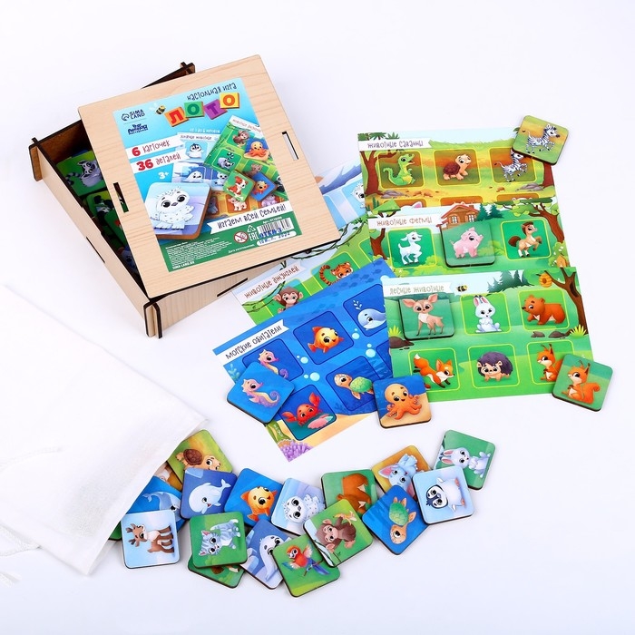 Лото — старинная игра, известная всему миру. Специально для малышей мы разработали свой вариант этого развлечения. Детское лото имеет яркие рисунки с различными животными, которые помогут ребёнку изучить животный мир.