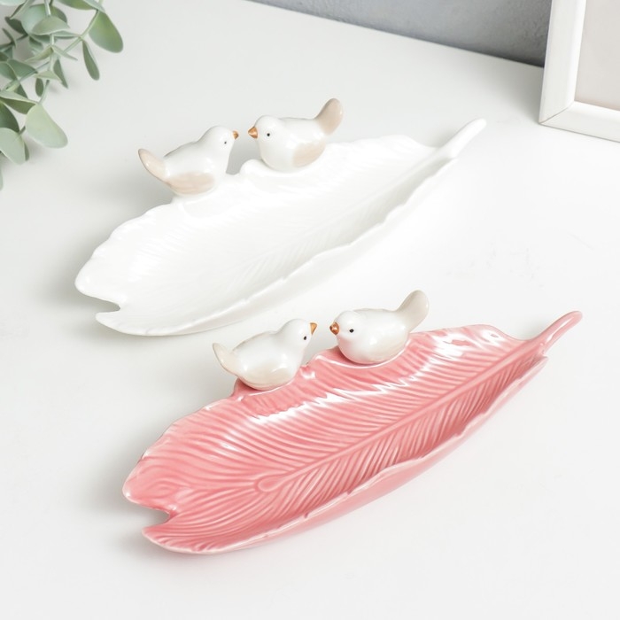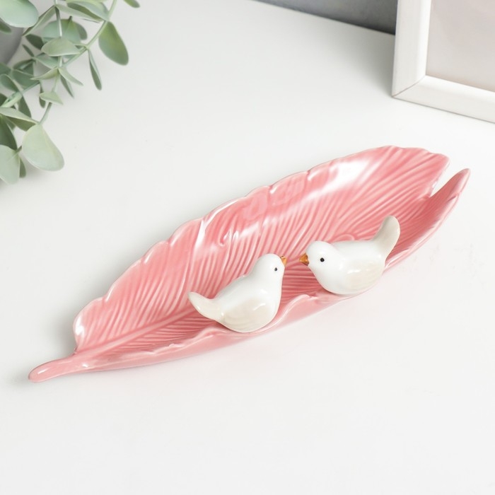 Сувенир керамика подставка "Птички на длинном листе" МИКС 5х20,5х7,5 см