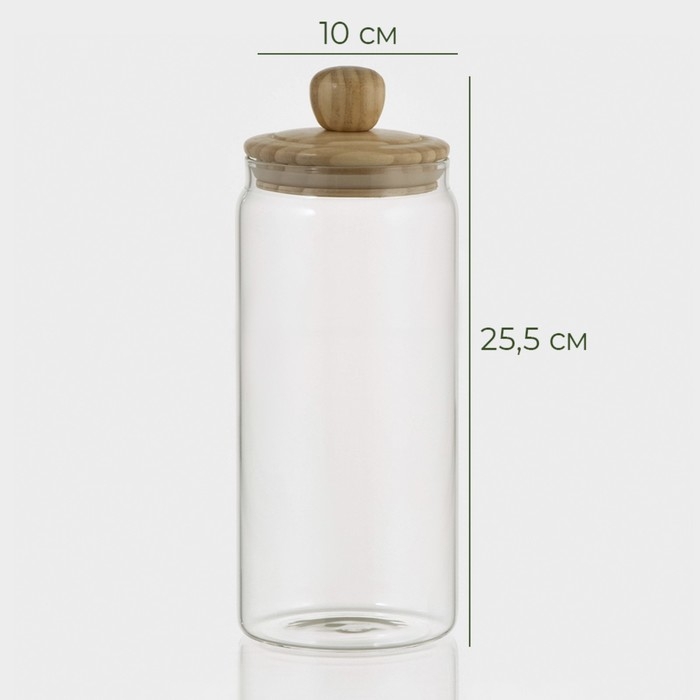 Банка стеклянная для хранения сыпучих продуктов Bella Tenero «Эко», 1,4 л, 10×25,5 см, с бамбуковой крышкой
