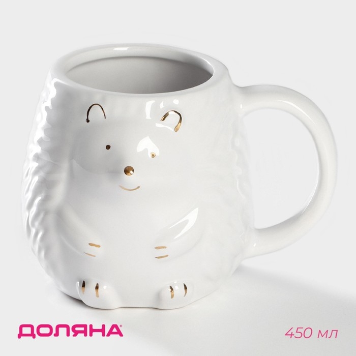 Кружка Доляна «Ёжик в золотом», 450 мл, цвет белый