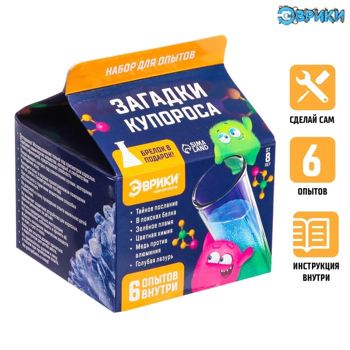 С набором для опытов «Загадки купороса» ребёнок узнает об удивительных свойствах веществ, проведёт 6 увлекательных опытов и поразит друзей.