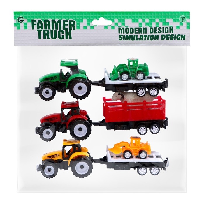 Набор инерционных тракторов «Фермер» с прицепом, 3 штуки