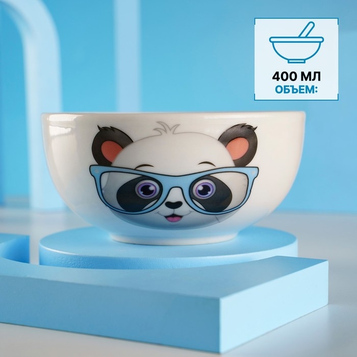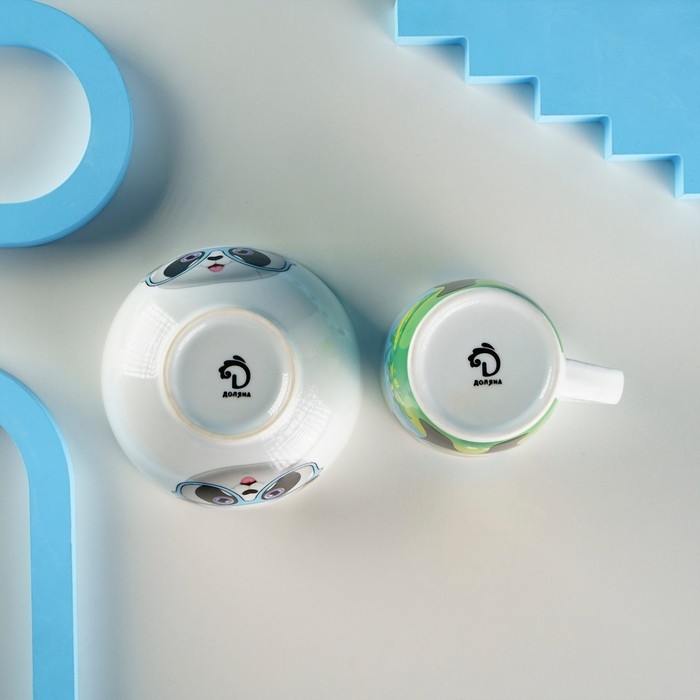 Набор детской посуды из керамики Доляна «Панда», 2 предмета: кружка 230 мл, миска 400 мл, цвет белый