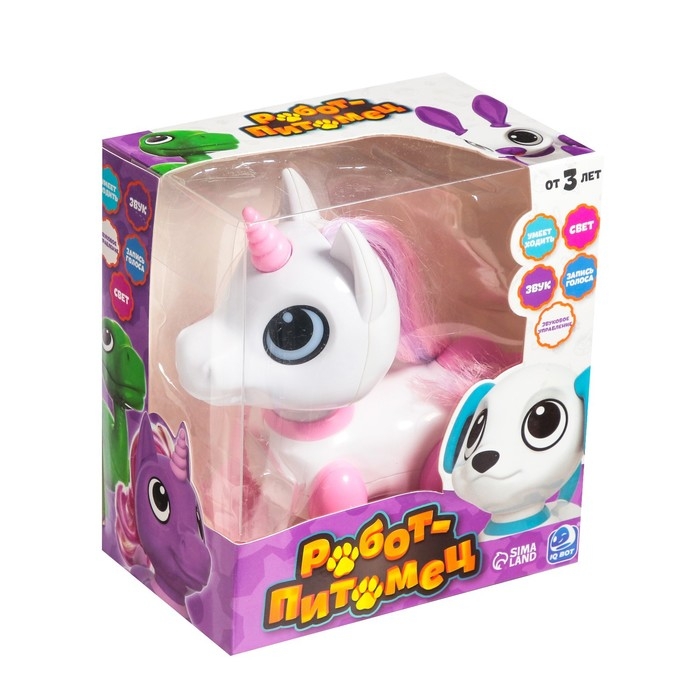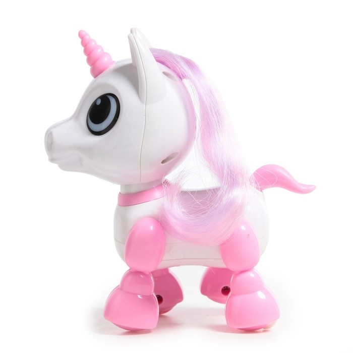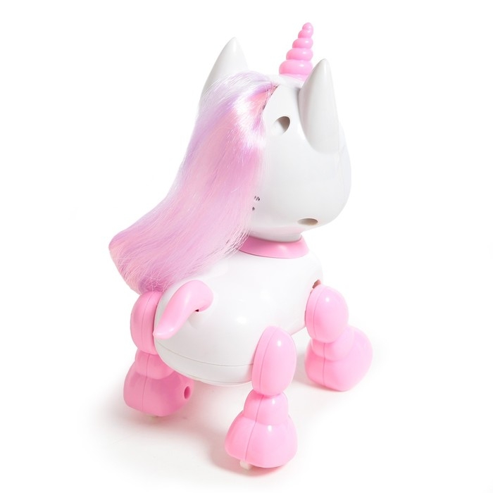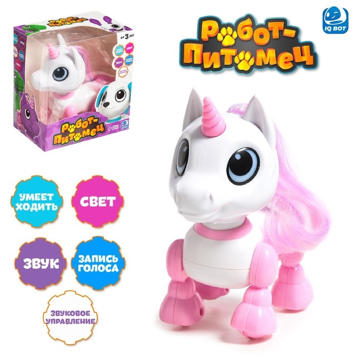 Робот единорог «Питомец» IQ BOT, интерактивный: с записью звуков, реагирует на хлопки, звук, свет, на батарейках, розовый