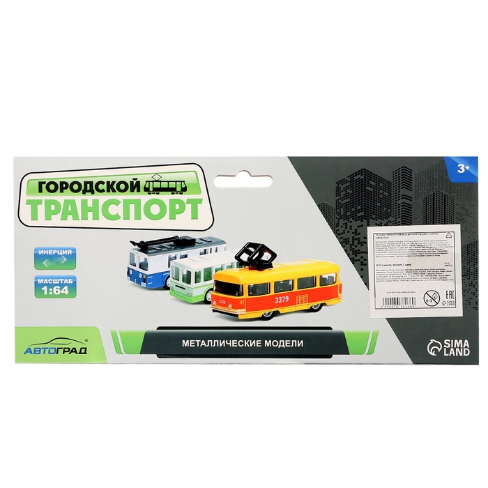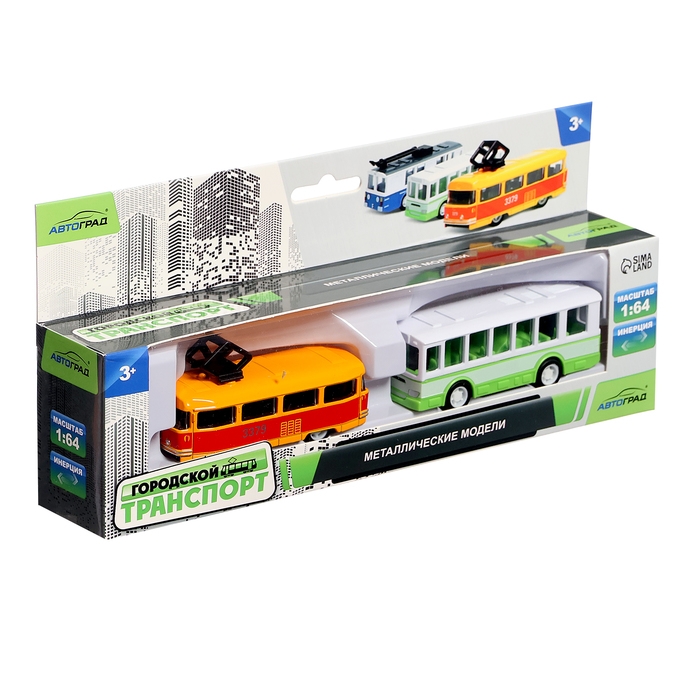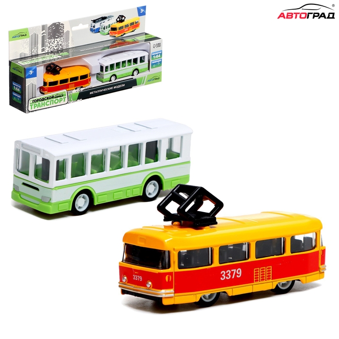 Набор металлический «Городской транспорт», трамвай + автобус, инерционный, масштаб 1:64