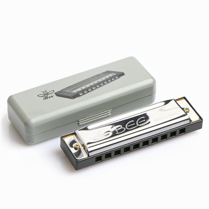 Губная гармошка, диатоническая, 10 отверстий, c-major, с футляром, серебристая