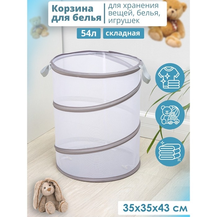 Корзина для белья Доляна, складная, 35×35×43 см, цвет белый