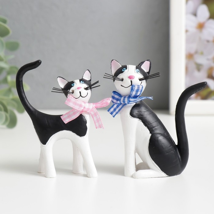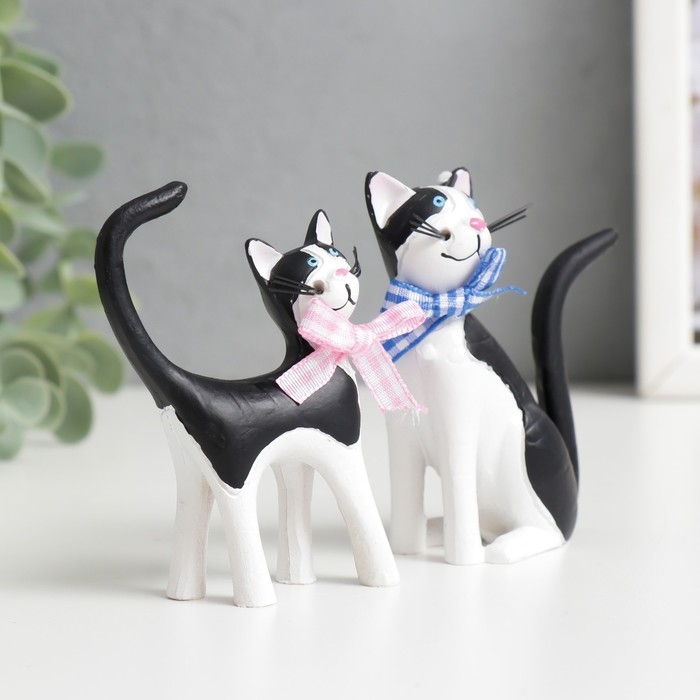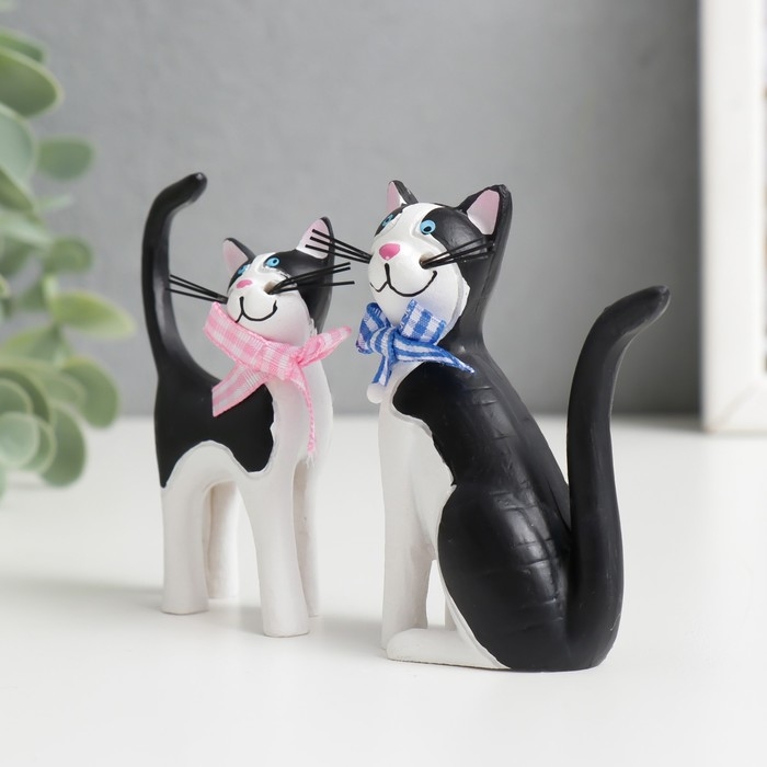 Сувенир полистоун "Кошки с бантиками" набор 2 шт 9,3х7х3,7 10х6,5х3 см