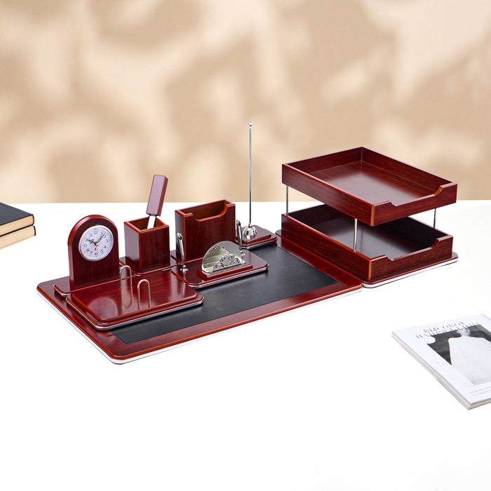Набор настольный 7в1 (каранд-ца,подст д/ручек,визит-ца,часы Д-009,этажерка,нож канц,подст,)