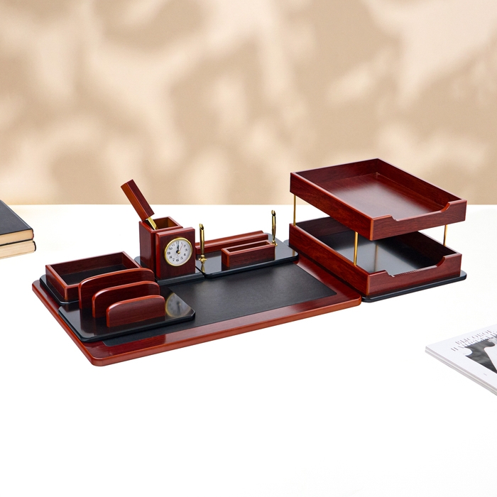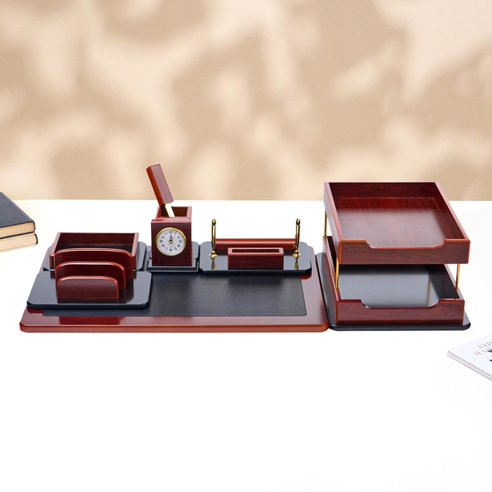 Набор настольный 7в1 (каранд-ца,подст д/ручек,визит-ца,часы Д-010,этажерка,нож канц,п,)