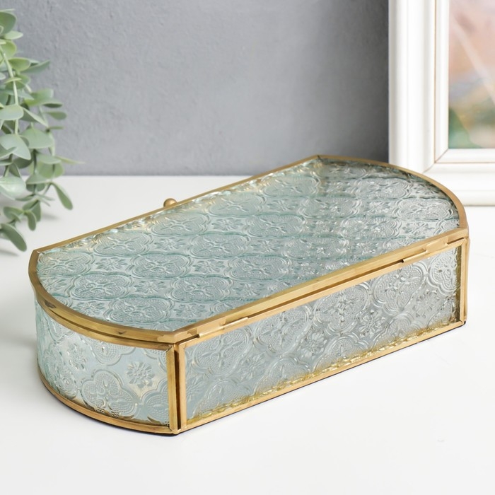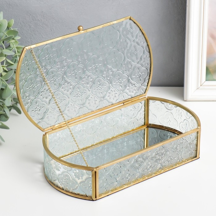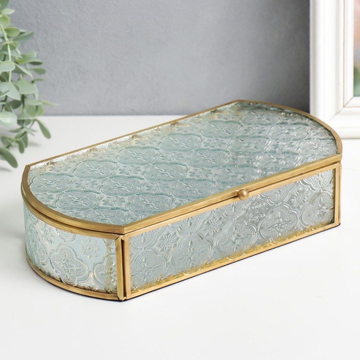 Шкатулка стекло с металлическим каркасом"Узорная" золото 5,5х13,5х24,5 см