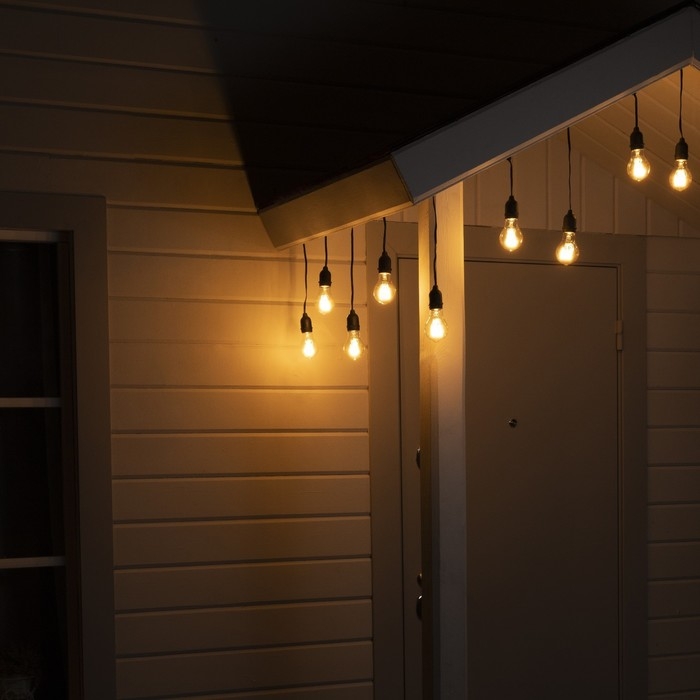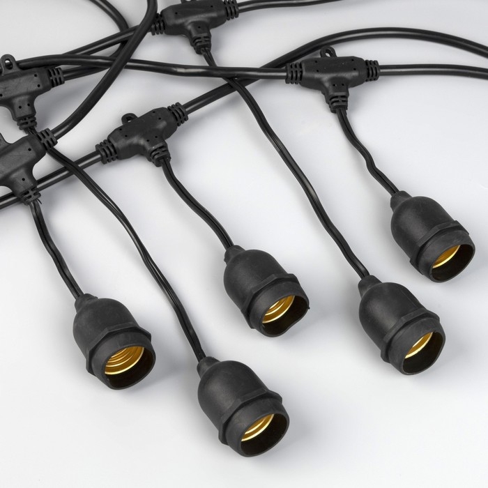Гирлянда «Ретро белт-лайт» со свесами 10 и 20 см, 10 м, IP54, УМС, 2W, тёмная нить, шаг 50 см, Е27 (без ламп), 220 В