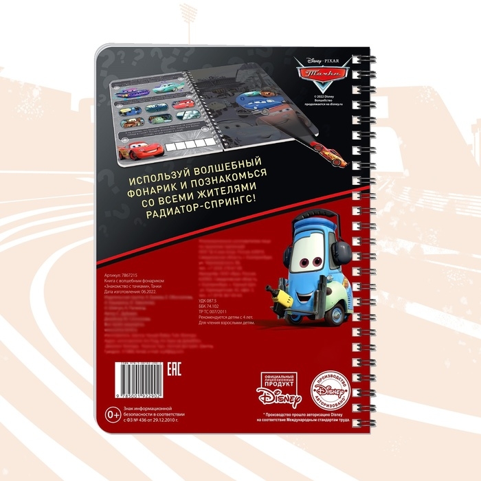 Книга с фонариком «Знакомство с Тачками», 22 стр., 5 игровых разворотов, Тачки