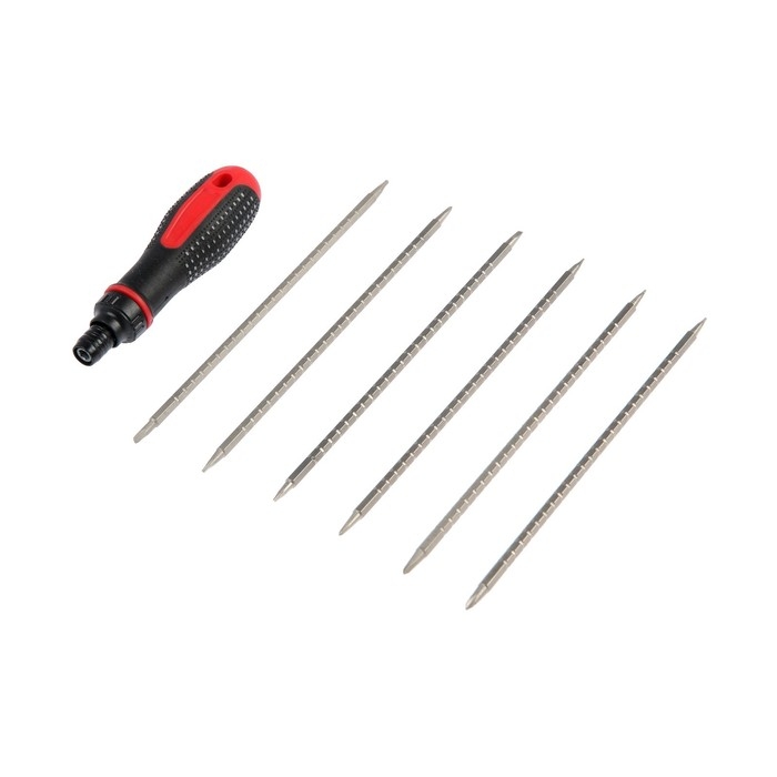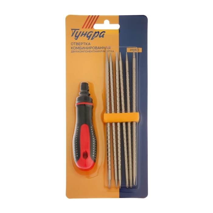 Отвертка комбинированная ТУНДРА, 2К рукоятка, реверс, двухсторонние биты 6 шт.