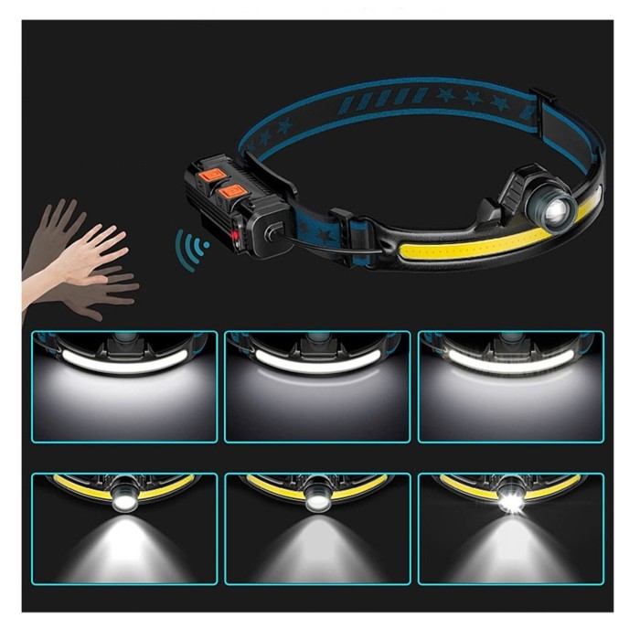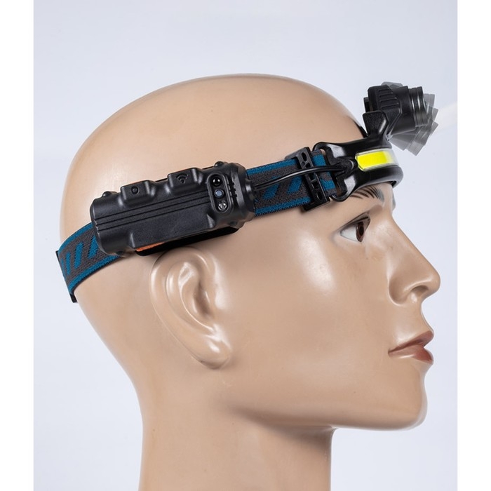 Фонарь налобный аккумуляторный, 15 Вт, 2000 мАч, COB, XPE, 6 режимов, индикатор заряда, USB