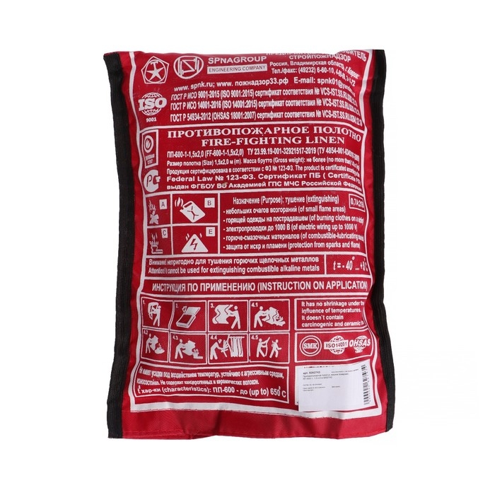 Противопожарное полотно, кошма пожарная, ПП-600-1, 1,5 х 2 м, упаковка ПВД