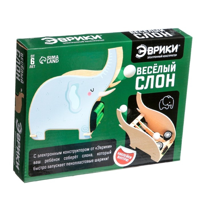 C электронным конструктором «Весёлый слон» юный инженер познакомится с законами механики и сразу применит их в увлекательном эксперименте! Ребёнок научится конструировать механические устройства и создаст фигурку слона, стреляющего шариками.