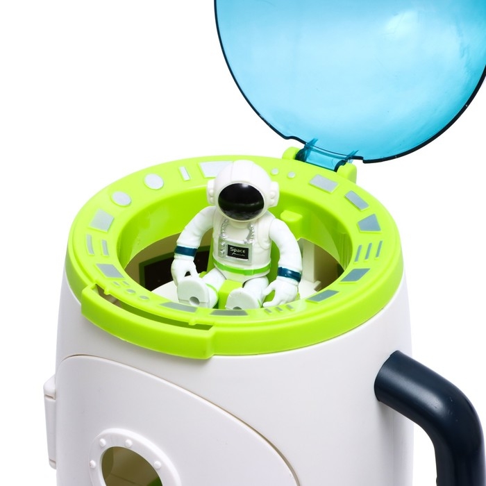 - Есть световые и звуковые эффекты: нажмите на зелёную кнопку, и появится свет, звук отсчёта и запуска ракеты. Для работы необходимо 2 батарейки типоразмера AAА (в комплекте).