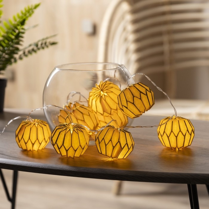 Гирлянда «Нить» 5 м с насадками «Ёжики жёлтые», IP20, прозрачная нить, 30 LED, свечение жёлтое, 8 режимов, 220 В