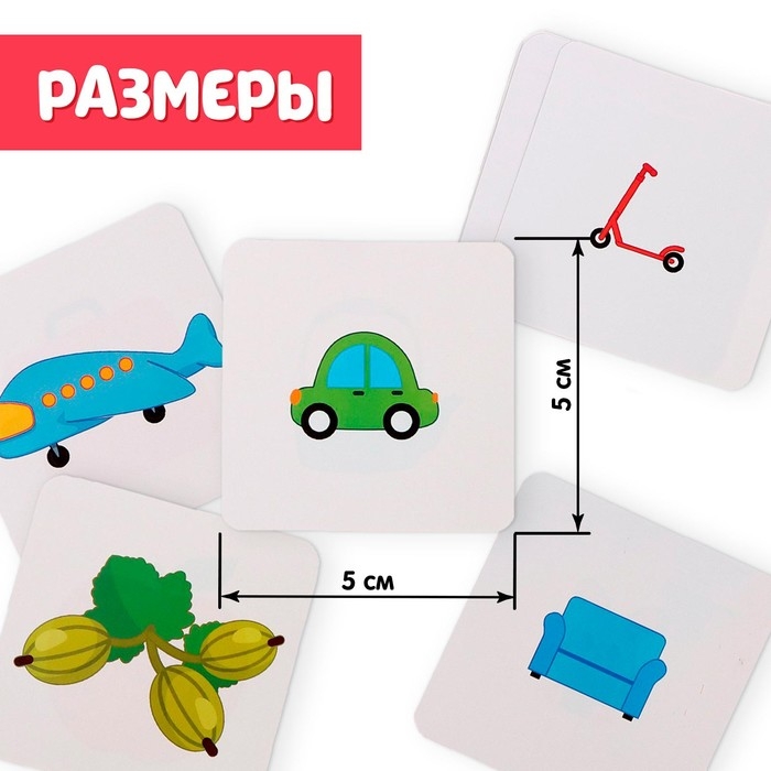 Внутри вы найдёте 9 карточек с животными и предметами и 3 присоски разных размеров.