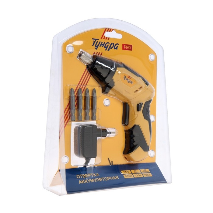 Аккумуляторная отвертка ТУНДРА, 3.6 В, 0.8 Ач, Li-ion