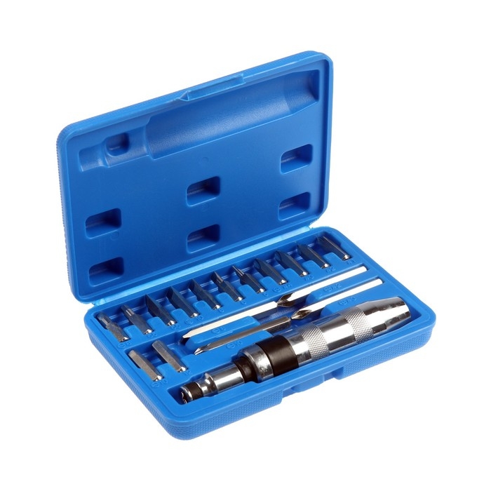 Отвертка ударно-поворотная ТУНДРА 1/2", с битами 17 шт., реверс, метал. рукоятка, кейс