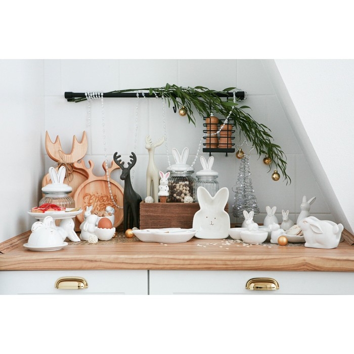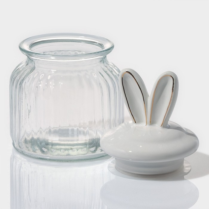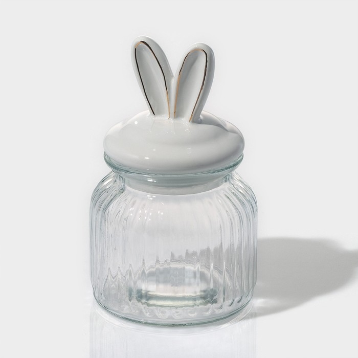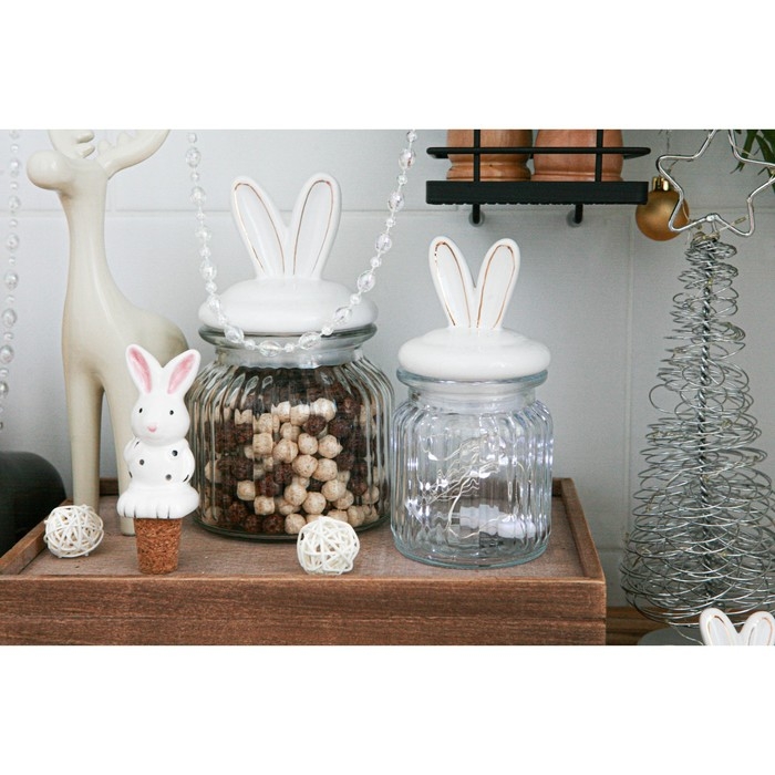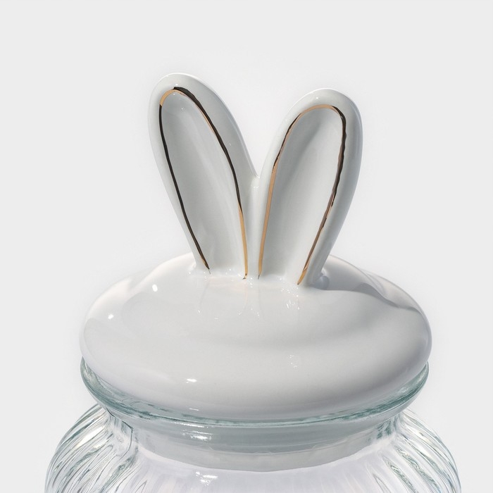 Банка стеклянная для хранения сыпучих продуктов Доляна «Зайка в золотом», 600 мл, с керамической крышкой