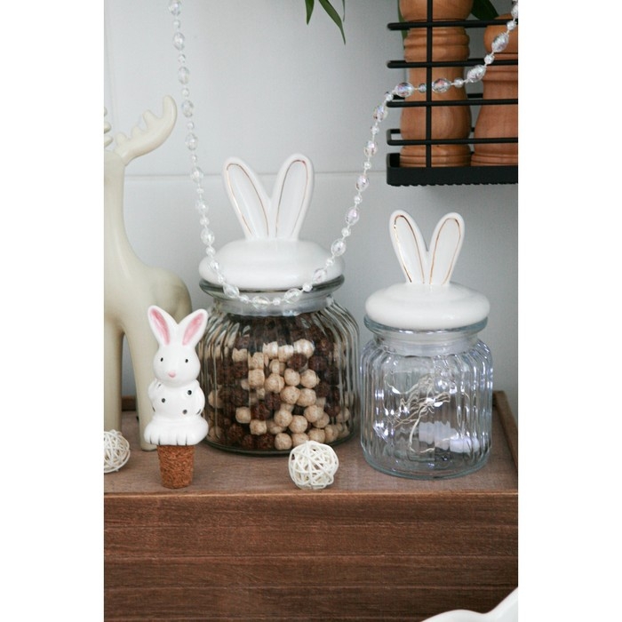 Банка стеклянная для хранения сыпучих продуктов Доляна «Зайка в золотом», 230 мл, с керамической крышкой