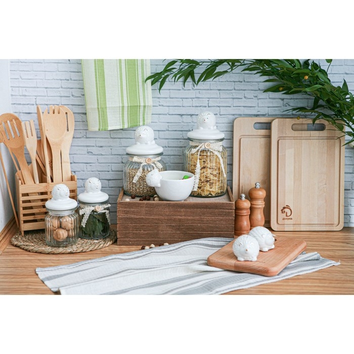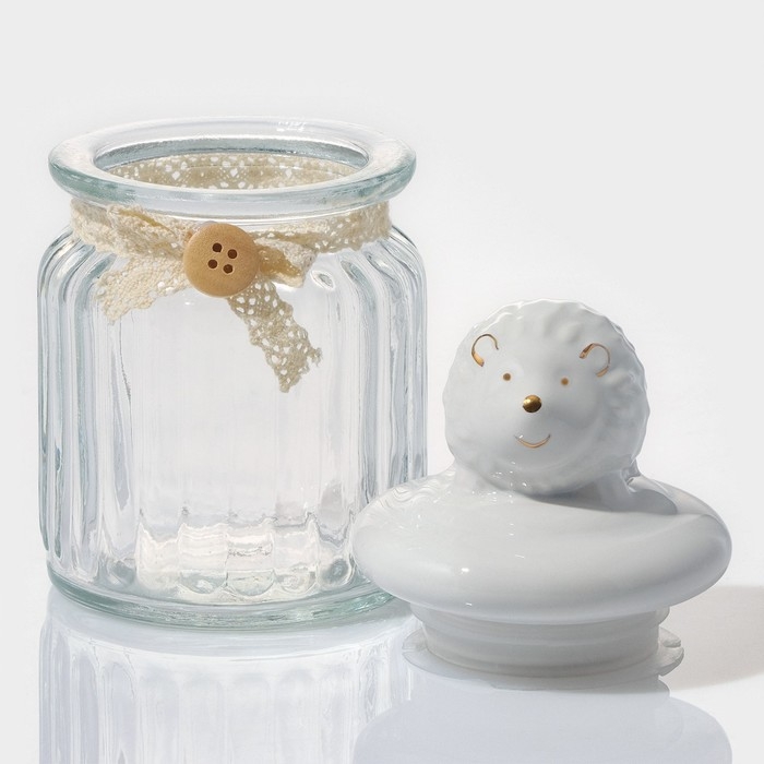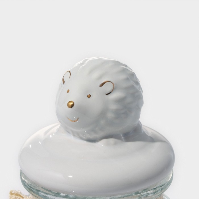 Банка стеклянная для хранения сыпучих продуктов Доляна «Ёжик в золотом», 230 мл, 7,8×15 см, с керамической крышкой