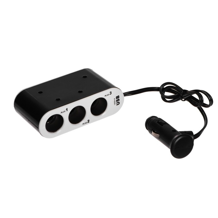 Разветвитель прикуривателя, 3 гнезда, 2 USB 1 А, 60 Вт, 12/24 В, подсветка, провод 70 см