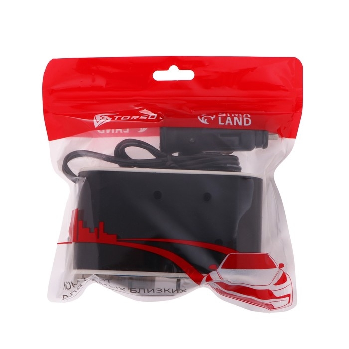 Разветвитель прикуривателя TORSO, 12-24 В, USB, провод 50 см, подсветка