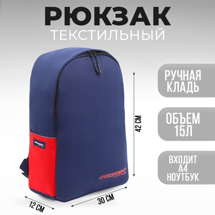 Рюкзак «PRESIDENT», 42 x 30 x 12 см, цвет синий