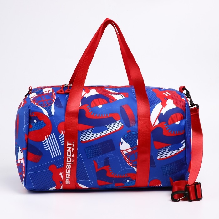 Сумка спортивная «RUSSIAN HOKEY», 47 x 28 x 24 см, цвет голубой