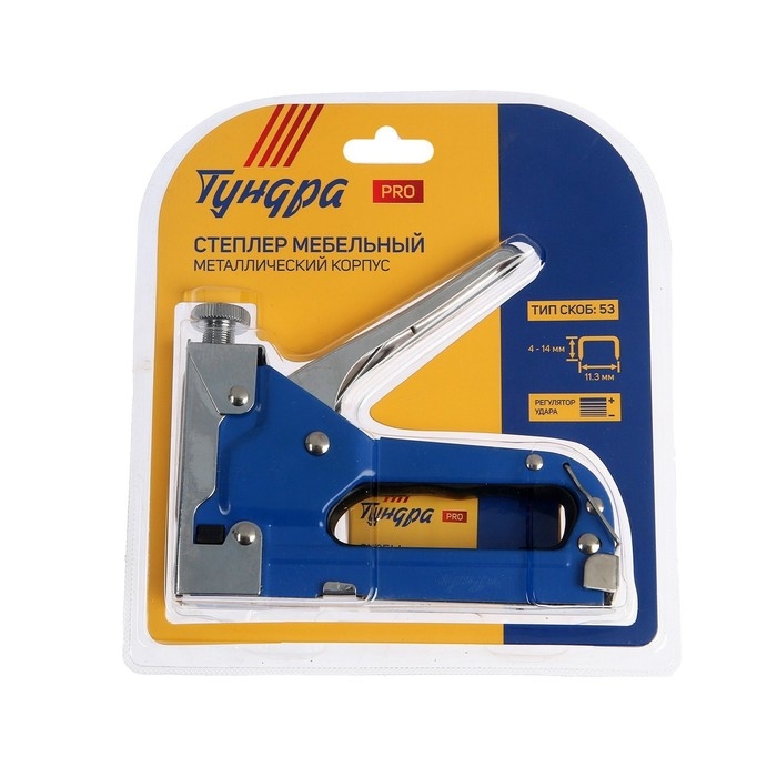 Степлер мебельный ТУНДРА, регулируемый, металлический корпус, тип скоб 53, 4 - 14 мм