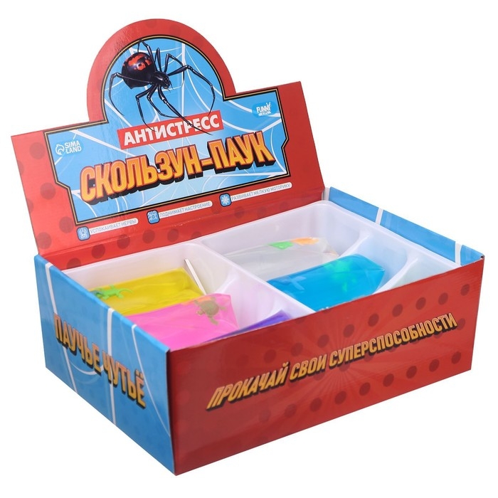 Мялка-скользун «Скользун-паук», цвета МИКС, с жидкостью, в шоубоксе