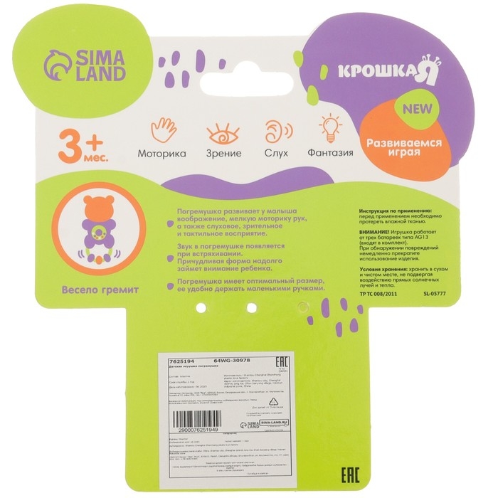 - Легкость и удобство использования: Наши погремушки имеют оптимальный размер и форму для маленьких ручек ребенка. Они легко ухватываются и удобно держатся, позволяя малышу самостоятельно исследовать и играть с ними.