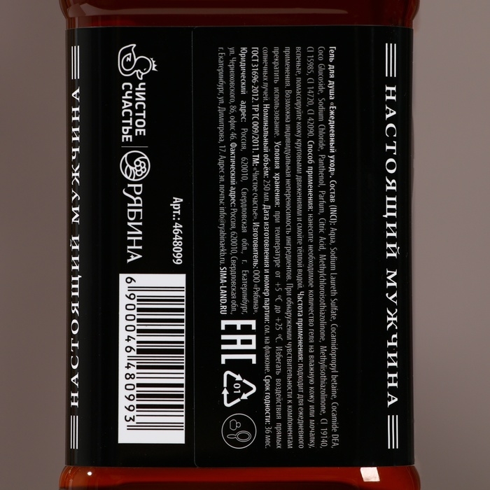 Гель для душа REAL MAN, 300 мл, аромат сандала и бергамота, HARD LINE